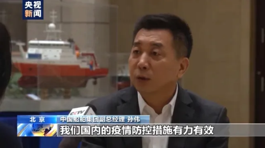 中國船舶集團(tuán)副總經(jīng)理 孫偉:其中重要的一條,就是我們國內(nèi)疫情防控措施有力有效,堅定了船東對中國企業(yè)的信心,我們的研發(fā)人員主動作為、創(chuàng)新工作,確保了在疫情下和客戶的溝通交流各個環(huán)節(jié)的暢通、高效。