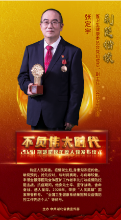 2020年8月11日,授予在抗擊新冠肺炎疫情斗爭中作出杰出貢獻(xiàn)的人士國家勛章和國家榮譽(yù)稱號(hào), 張定宇被授予“人民英雄”國家榮譽(yù)稱號(hào)。