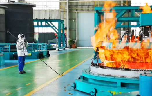 重齒公司熱處理車間,熱處理工人面對(duì)著高達(dá)800多度的熱處理爐,不懼高溫火焰,確保產(chǎn)品高質(zhì)量產(chǎn)出。