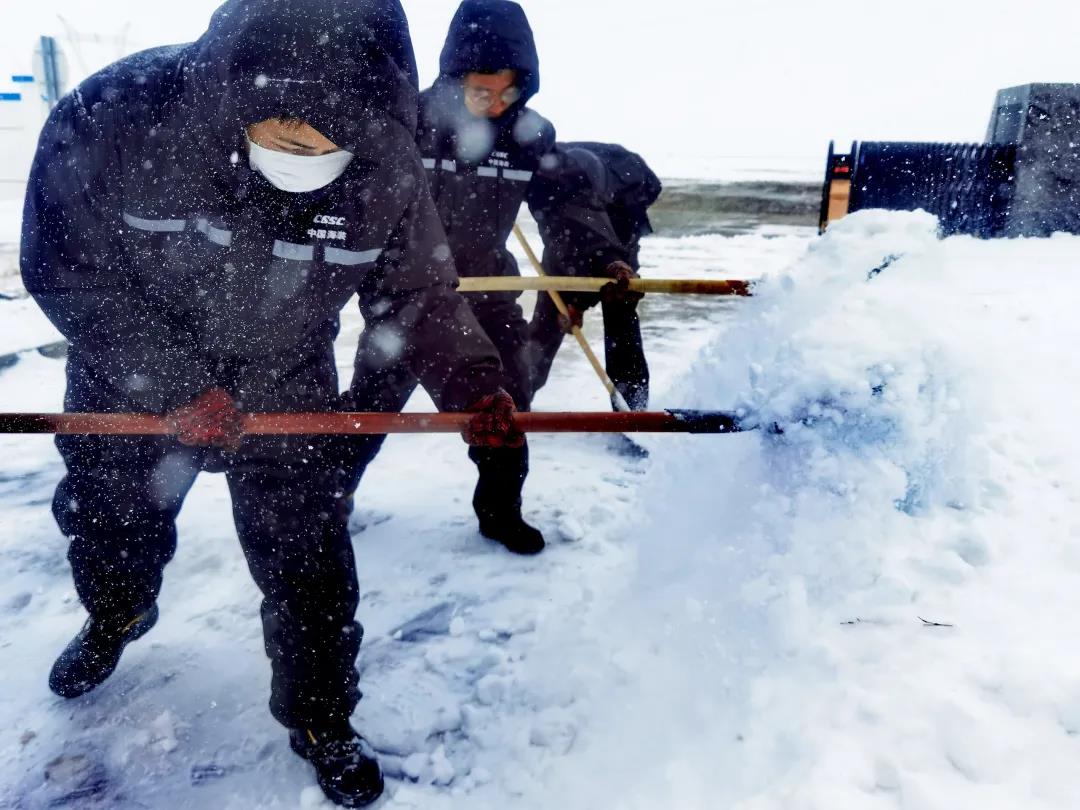 進(jìn)入11月,內(nèi)蒙古自治區(qū)錫林郭勒盟地區(qū)迎來大面積的暴風(fēng)雪,烏達(dá)萊項(xiàng)目人員在趕往風(fēng)場的路上遭遇積雪路段,雖然氣候嚴(yán)寒,但為了及時(shí)消除機(jī)組故障,大家在積雪路段采取挖雪推車的方式齊心協(xié)力,一同開展清理路面積雪的行動(dòng)。這個(gè)冬日,冰雪阻擋不住海裝追風(fēng)者們勇往直前的步伐,他們只為恪盡職守完成一個(gè)承諾——風(fēng)機(jī)旋轉(zhuǎn)、帶來光熱。