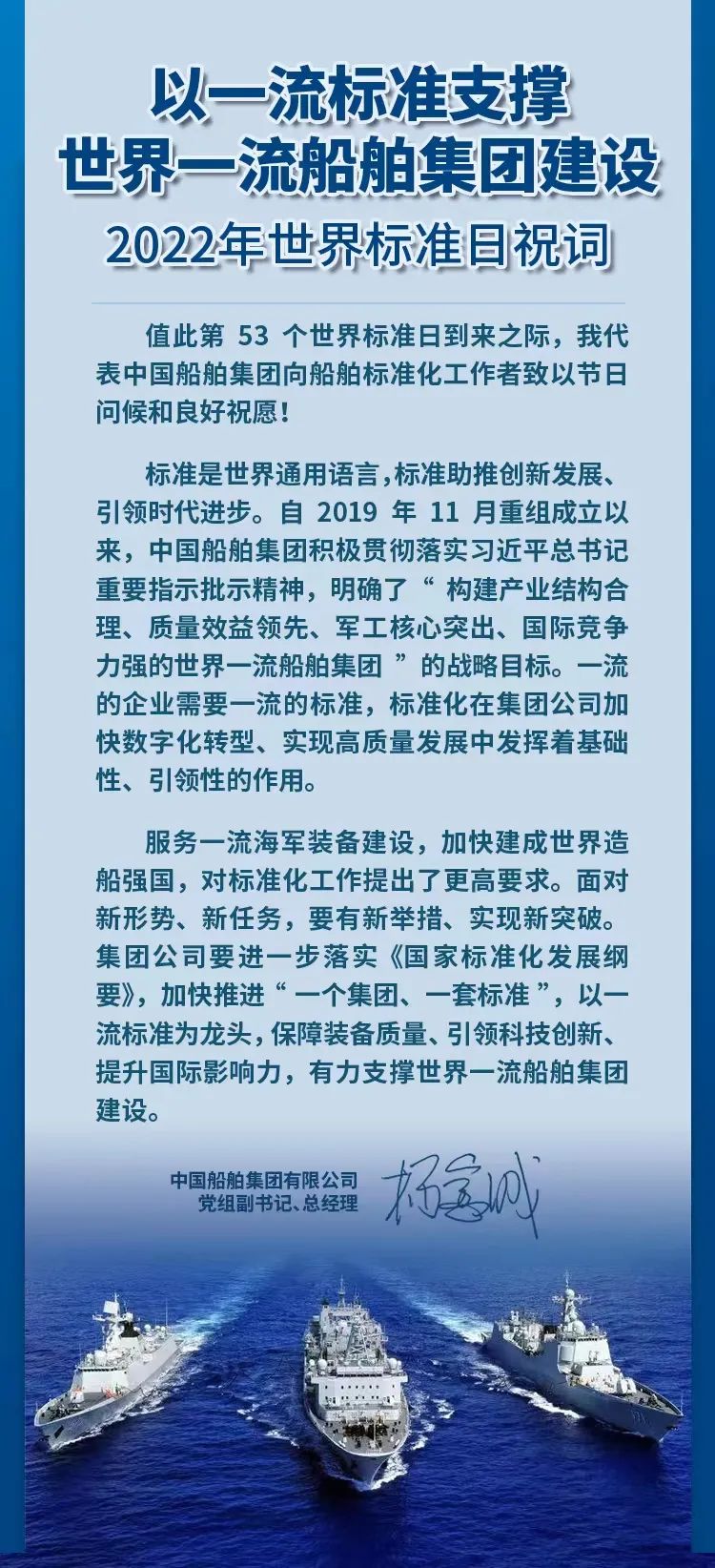 10月14日,中國船舶集團(tuán)舉行第53屆世界標(biāo)準(zhǔn)日主題活動(dòng),主題為“以一流標(biāo)準(zhǔn)支撐世界一流船舶集團(tuán)建設(shè)”