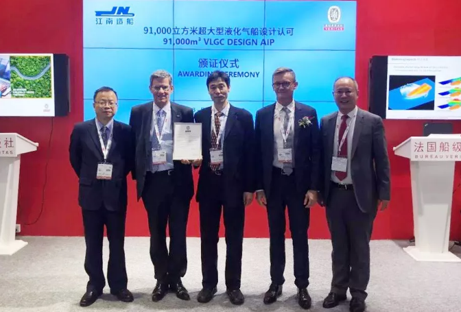 ????海事展首日,中國船舶集團(tuán)所屬江南造船(集團(tuán))有限責(zé)任公司新開發(fā)的技術(shù)“SFONE”獲美國船級社AiP證書,新一代VLGC-PANDA 91T獲得法國船級社的AiP證書。 SFONE(額外的1%裝載率)是一項針對液化氣船裝載的特殊技術(shù)。江南已經(jīng)獲得了中國國家專利局頒發(fā)的發(fā)明專利證書。新一代VLGC-PANDA 91T在之前已經(jīng)獲得了ABS和LR的AiP證書,PANDA 91T目前也已獲得三家著名船級社的AiP證書。