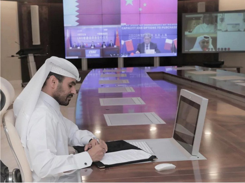 ????雖然全球疫情持續(xù)蔓延,但“一帶一路”建設的步伐并未停滯。4月22日,中國船舶集團有限公司與卡塔爾石油公司在中國北京、上海及卡塔爾多哈三地以“云簽約”方式聯(lián)合簽署“中國船舶—卡塔爾石油液化天然氣(LNG)船建造項目”協(xié)議,所涉訂單總金額超過200億元人民幣。這是卡塔爾天然氣項目首批訂單,也是中國船企迄今承接的金額最大的造船出口訂單。中國船舶集團董事長雷凡培、卡塔爾能源事務部長兼卡塔爾石油總裁薩阿德?謝里達?阿爾卡比出席簽約儀式并分別代表雙方在協(xié)議文本上簽字,中國船舶集團副總經(jīng)理孫偉主持簽約儀式,卡塔爾天然氣公司首席執(zhí)行官卡利德?阿爾?塞尼、卡塔爾石油商務開發(fā)執(zhí)行副總裁賈西姆?阿爾馬拉祖齊等出席簽約儀式。