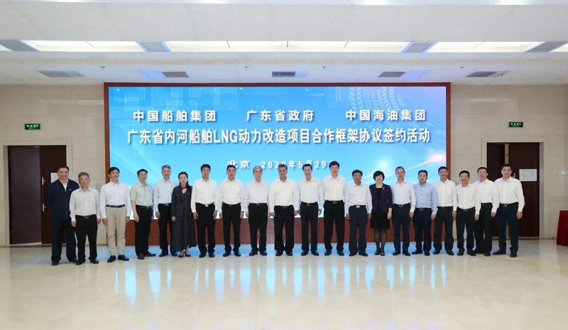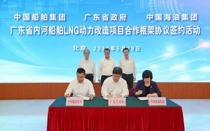 ????5月29日,中國船舶集團(tuán)有限公司與廣東省人民政府、中國海洋石油有限公司在京簽署《廣東省內(nèi)河船舶LNG動力改造項(xiàng)目合作框架協(xié)議》。廣東省委副書記、省長馬興瑞,中國船舶集團(tuán)黨組書記、董事長雷凡培,中國海油黨組書記、董事長汪東進(jìn),中國船舶集團(tuán)黨組成員、副總經(jīng)理杜剛,中國海油黨組成員、副總經(jīng)理陳壁出席簽約儀式。廣東省副省長覃偉中,中國船舶集團(tuán)黨組成員、副總經(jīng)理孫偉,中國海油黨組成員、總會計(jì)師溫冬芬分別代表各方在協(xié)議上簽字。
