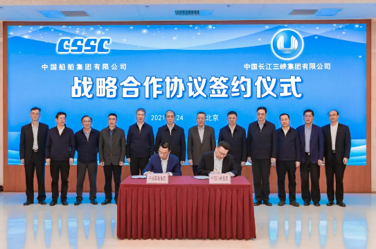 2月24日,中國(guó)船舶集團(tuán)有限公司與中國(guó)長(zhǎng)江三峽集團(tuán)有限公司在京簽署戰(zhàn)略合作框架協(xié)議。中國(guó)船舶集團(tuán)黨組書(shū)記、董事長(zhǎng)雷凡培,三峽集團(tuán)黨組書(shū)記、董事長(zhǎng)雷鳴山出席簽約儀式。中國(guó)船舶集團(tuán)黨組成員、副總經(jīng)理盛紀(jì)綱,三峽集團(tuán)黨組成員、副總經(jīng)理王良友分別代表雙方在協(xié)議上簽字。