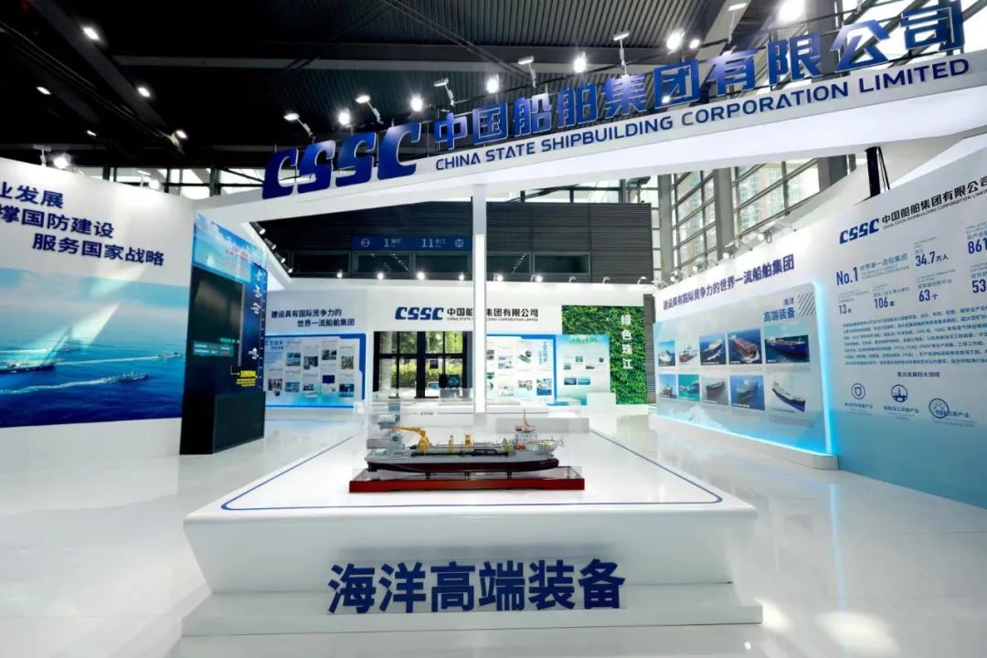 在大會(huì)的展示環(huán)節(jié),中國船舶集團(tuán)展臺(tái)通過集團(tuán)總體、海洋防務(wù)、海洋高端裝備、工藝技術(shù)創(chuàng)新發(fā)展、海洋經(jīng)濟(jì)新業(yè)態(tài)、工匠風(fēng)采、“奮斗者”號(hào)、綠色珠江八個(gè)板塊,分別展出了7500立方米液態(tài)二氧化碳運(yùn)輸船、半潛式全自動(dòng)現(xiàn)代化三文魚深海養(yǎng)殖裝備、合金鋼中間軸在大型油船上的首次應(yīng)用等55項(xiàng)創(chuàng)新成果,并展示了28位工匠代表的風(fēng)采。集團(tuán)公司展臺(tái)采用開放、通透的布局,突出中國船舶品牌元素,集中展示集團(tuán)公司立足新發(fā)展階段,貫徹新發(fā)展理念,在戰(zhàn)略重組后以高質(zhì)量發(fā)展為主題,壯大主業(yè)實(shí)業(yè)、加快推動(dòng)船海產(chǎn)業(yè)向中高端轉(zhuǎn)型發(fā)展,以及大力弘揚(yáng)軍工精神和勞模精神、勞動(dòng)精神、工匠精神,強(qiáng)化自主創(chuàng)新的整體實(shí)力和在推動(dòng)低碳環(huán)保、區(qū)域經(jīng)濟(jì)發(fā)展等方面的最新成果。集團(tuán)公司還通過本屆大會(huì)“互聯(lián)網(wǎng)+展會(huì)”模式開設(shè)的“云展會(huì)”,讓參觀者線上云游中國船舶展臺(tái),擴(kuò)大企業(yè)品牌影響力。