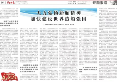 大力傳承弘揚船舶精神,加快建設世界造船強國