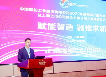 12月9日,中國船舶工業(yè)股份有限公司2022年度船海產(chǎn)融發(fā)展高峰論壇暨上海上市公司協(xié)會上市公司之家揭牌儀式在上海舉行。論壇旨在搭建產(chǎn)業(yè)與金融交流合作平臺,聚合船舶工業(yè)產(chǎn)業(yè)頭部資源,洞悉行業(yè)賽道一線信息,深化金融助力實(shí)體經(jīng)濟(jì)發(fā)展,推動行業(yè)創(chuàng)新驅(qū)動。中國船舶集團(tuán)黨組成員、總會計師賈海英,上海上市公司協(xié)會會長、上港集團(tuán)黨委書記、董事長顧金山出席論壇并致辭。中國船舶集團(tuán)黨組成員、副總經(jīng)理,中國船舶股份董事長盛紀(jì)綱發(fā)表主旨演講。