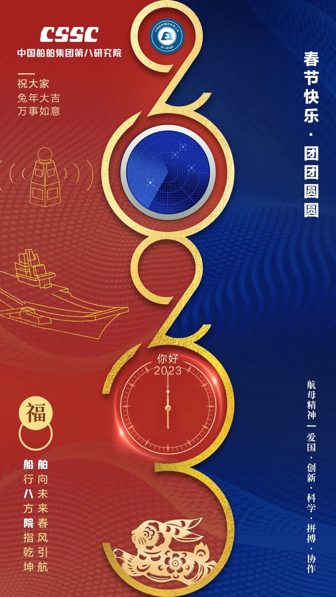 渤海造船的拜年海報(bào)以紅色背景為基礎(chǔ),奠定喜慶祥和的節(jié)日氛圍,畫面主體采用中國(guó)傳統(tǒng)民間剪紙藝術(shù),將飛騰的瑞兔與破浪的國(guó)之重器有機(jī)結(jié)合,讓我們2023年突飛猛進(jìn),大展宏圖!