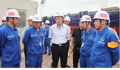 6月8日下午、9日上午,在龍穴基地調(diào)研期間,溫剛走進(jìn)造修船生產(chǎn)現(xiàn)場(chǎng),登上多型重點(diǎn)在建船舶,察看車(chē)間、船塢、船臺(tái)等生產(chǎn)區(qū)域,與企業(yè)班子成員深入交流,聽(tīng)取了黃埔文沖、廣船國(guó)際產(chǎn)業(yè)發(fā)展、深化改革、科技創(chuàng)新、人才隊(duì)伍建設(shè)、精益管理、黨的建設(shè)等有關(guān)情況的匯報(bào)。
