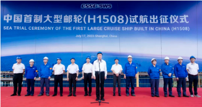 7月17日清晨7時許,隨著中國船舶集團有限公司黨組書記、董事長溫剛一聲令下,白色涂裝、流線型船體、身系“敦煌飛天彩帶”的首艘國產(chǎn)大型郵輪“愛達·魔都號”緩緩駛出中國船舶集團外高橋造船4號碼頭,正式出海試航。集團公司黨組成員、副總經(jīng)理盛紀綱出席試航出征儀式并致辭。