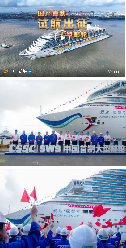 自2019年10月首艘國產(chǎn)大型郵輪開工建造以來,中國船舶集團及相關(guān)成員單位深入貫徹落實習近平總書記重要指示批示精神和黨中央決策部署,通過引進消化和自主創(chuàng)新,相繼開展了郵輪設(shè)計、建造、項目管理等專項攻關(guān),項目工程穩(wěn)步推進,各項節(jié)點順利完成,一系列科技創(chuàng)新成果落地開花。預計首制船將于今年底完工交付。