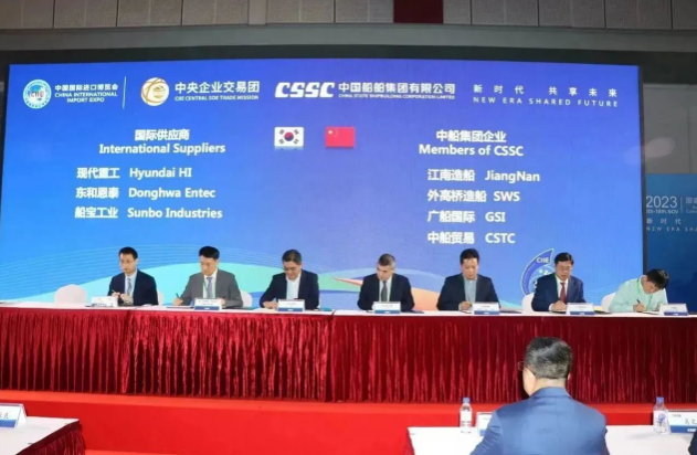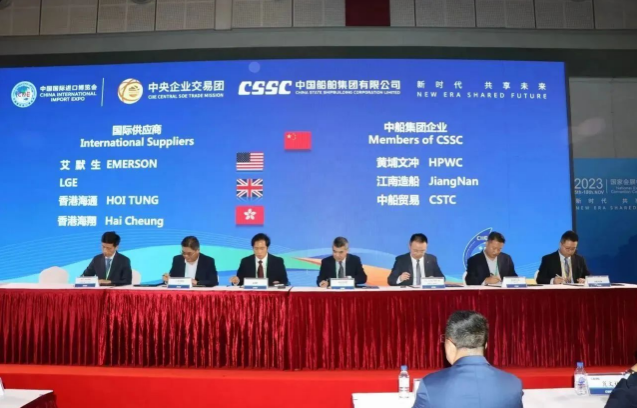 簽約儀式上,中國船舶集團(tuán)旗下7家成員單位與來自9個國家和地區(qū)的17家國際合作伙伴進(jìn)行了20個項(xiàng)目的集中簽約,累計(jì)總金額達(dá)4.82億美元,同比增長18%。具體看,交易產(chǎn)品涵蓋主機(jī)、再液化裝置、滾裝設(shè)備、液化天然氣(LNG)供氣系統(tǒng)、液貨系統(tǒng)等船舶建造領(lǐng)域的各類重要配套設(shè)備。這些簽約將有效推動國際國內(nèi)市場融合互鑒,為國際船舶交易市場的日益繁榮貢獻(xiàn)中國船舶力量。