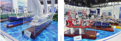 重點(diǎn)展示奮力摘取造船業(yè)最后一顆明珠的首制國(guó)產(chǎn)大型郵輪,以風(fēng)、光、甲醇裝備等為主體的綠色船舶等高端海洋裝備、以“商業(yè)模式創(chuàng)新+創(chuàng)新技術(shù)應(yīng)用”為引領(lǐng)的海洋文旅、深海養(yǎng)殖、海上風(fēng)電等新興海洋經(jīng)濟(jì)裝備、踐行“服務(wù)國(guó)家戰(zhàn)略”企業(yè)使命的與自然資源部和廣東省合作項(xiàng)目成果等,展現(xiàn)了中國(guó)船舶集團(tuán)作為世界第一造船集團(tuán)的總體實(shí)力、企業(yè)使命。