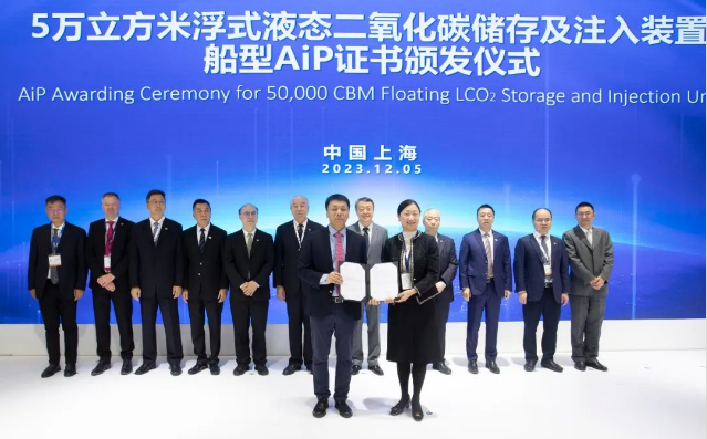 在展會現(xiàn)場,辛國斌、溫剛等參觀了集團公司展臺,并共同見證了中國船舶集團與法國GTT公司簽訂2023版諒解備忘錄(MOU)、大連造船海洋CCUS產(chǎn)業(yè)鏈產(chǎn)品頒證、5萬立方米浮式液態(tài)二氧化碳儲存及注入裝置船型AIP證書頒發(fā)儀式、2萬及1.2萬立方米液態(tài)二氧化碳運輸船船型AIP證書頒發(fā)儀式。