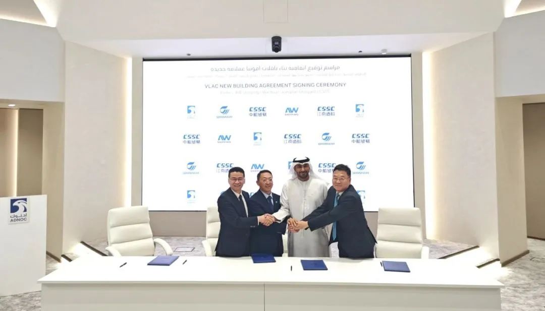 揭牌儀式后,江南造船與阿布扎比國家石油集團物流和服務(wù)公司(ADNOC L&S)和萬華化學(xué)集團的合資公司AW航運公司續(xù)簽了2艘93000立方米超大型液氨運輸船(VLAC) 。