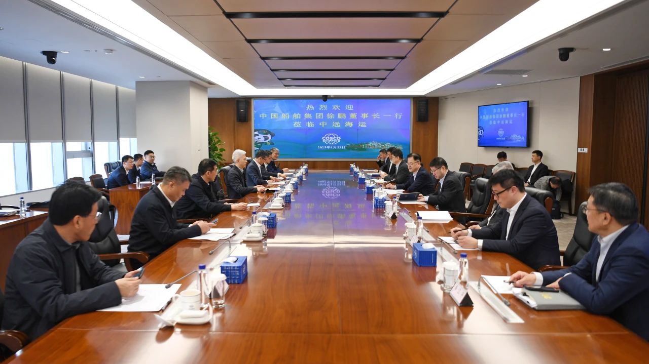 1月22日,中國(guó)船舶集團(tuán)有限公司黨組書(shū)記、董事長(zhǎng)徐鵬一行拜會(huì)中國(guó)遠(yuǎn)洋海運(yùn)集團(tuán)有限公司黨組書(shū)記、董事長(zhǎng)萬(wàn)敏。雙方圍繞深入貫徹落實(shí)黨的二十屆三中全會(huì)精神和中央經(jīng)濟(jì)工作會(huì)議精神、加快綠色和數(shù)字化轉(zhuǎn)型、攜手推動(dòng)我國(guó)航運(yùn)業(yè)和造船業(yè)高質(zhì)量發(fā)展等主題,進(jìn)行了深入交流,并達(dá)成了共識(shí)。中船集團(tuán)黨組成員、副總經(jīng)理胡賢甫,中遠(yuǎn)海運(yùn)集團(tuán)黨組成員、副總經(jīng)理、總會(huì)計(jì)師孫云飛參加會(huì)談。