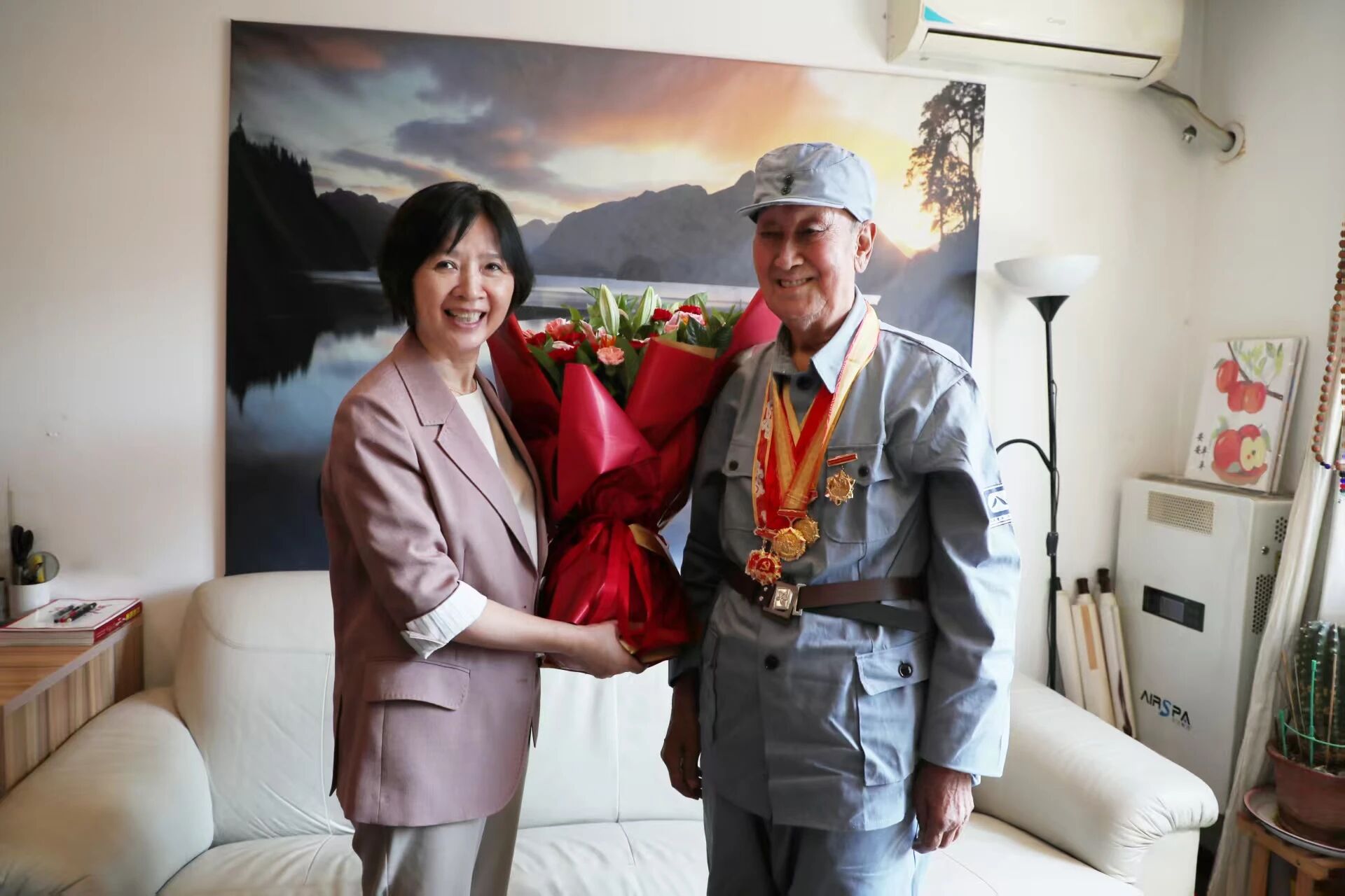 在紀(jì)念中國人民抗日戰(zhàn)爭(zhēng)暨世界反法西斯戰(zhàn)爭(zhēng)勝利80周年之際,中國船舶集團(tuán)有限公司黨組副書記、董事賈海英走訪慰問抗戰(zhàn)老兵焦英杰,頒發(fā)“中國人民抗日戰(zhàn)爭(zhēng)勝利80周年”紀(jì)念章,并代表集團(tuán)公司黨組向他致以崇高敬意和誠摯問候。