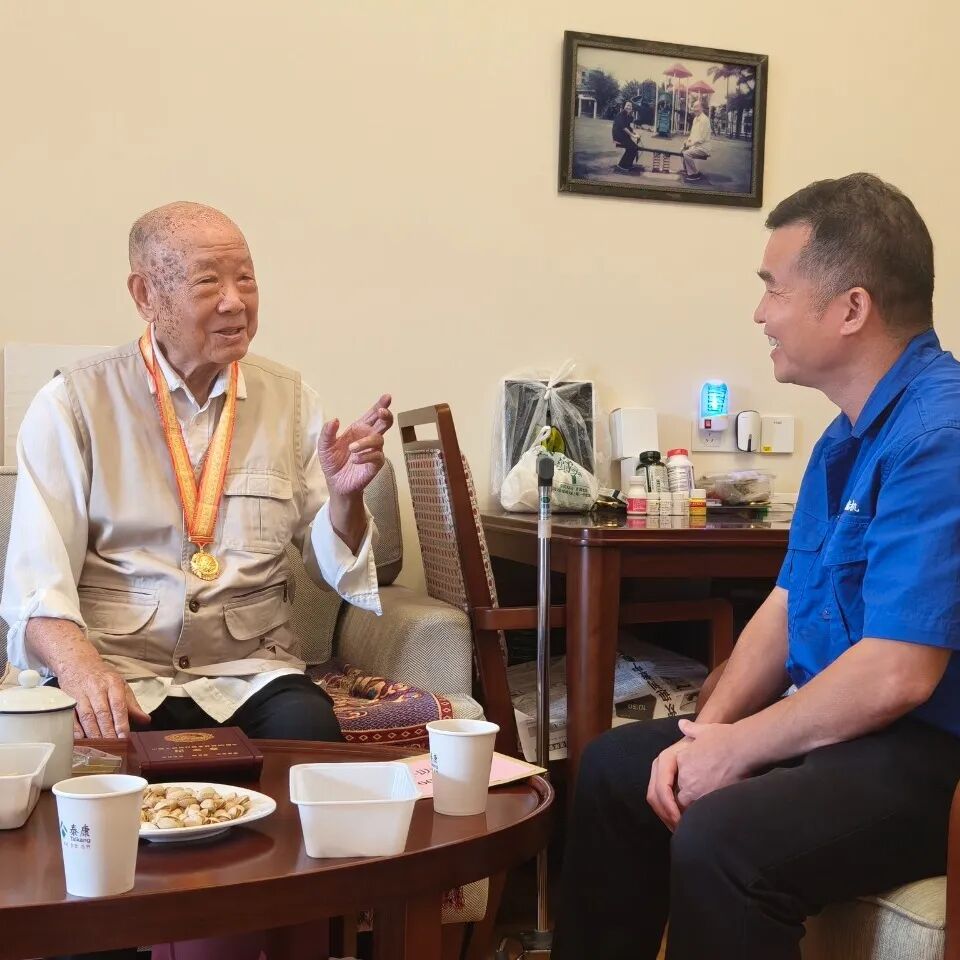 賈海英在焦英杰家中與其促膝交談,悉心詢問他的身體狀況和生活情況,專注聽他講述抗戰(zhàn)時(shí)期的崢嶸歲月,頻頻點(diǎn)頭回應(yīng)并追問細(xì)節(jié),衷心地感謝他在抗戰(zhàn)時(shí)期作出的巨大犧牲和貢獻(xiàn),并祝愿他身體健康、福壽綿長(zhǎng);同時(shí),叮囑總部各部門及相關(guān)單位要及時(shí)關(guān)心、了解抗戰(zhàn)老兵的生活和工作情況,使大家真切感受到集團(tuán)公司黨組的關(guān)懷與溫暖。