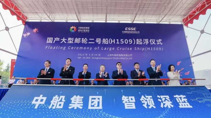 4月28日,第二艘國產(chǎn)大型郵輪“愛達(dá)·花城號(hào)”起浮儀式在中國船舶集團(tuán)有限公司旗下外高橋造船舉行。中船集團(tuán)黨組副書記、董事、總經(jīng)理王國強(qiáng)出席儀式并致辭。工信部裝備工業(yè)二司司長徐春榮,中旅集團(tuán)黨委副書記、總經(jīng)理范云軍出席儀式并致辭。文旅部產(chǎn)業(yè)發(fā)展司副司長馬力,中船集團(tuán)黨組成員、副總經(jīng)理胡賢甫,中旅集團(tuán)黨委副書記、董事石善博,上海市經(jīng)濟(jì)和信息化委員會(huì)副主任蒲亞鵬,浦東新區(qū)副區(qū)長李慧出席儀式。