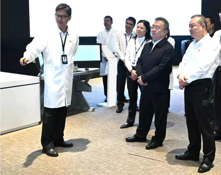 王國強深入科研生產一線,調研了相關實驗室和產品,與首席專家、領軍人才、一線科研人員交流,聽取了二級管理單位負責人關于企業(yè)發(fā)展、科技創(chuàng)新、人才培養(yǎng)、黨的建設、文化建設等情況匯報。