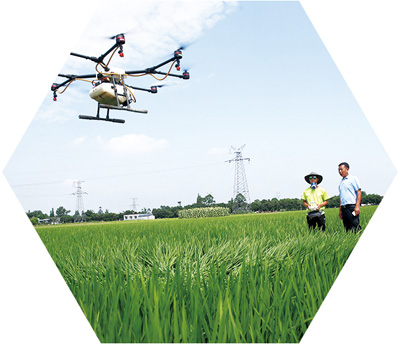 無人植保機(jī)在眉山市東坡區(qū)鎮(zhèn)南村噴灑農(nóng)藥。張忠蘋攝