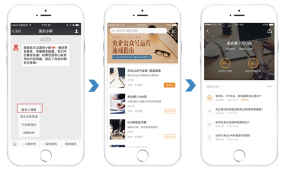 “國資小新”上線五年來,基于對粉絲需求的深度了解,先后設立了“微招聘”、“畢業(yè)去哪兒”、“新思”、“小新薦書”等欄目,并嘗試語音知識分享,為包括國企員工在內的廣大粉絲提供招聘求職信息、分享企業(yè)管理經驗、解讀國企改革發(fā)展的政策和形式,幫助粉絲實現(xiàn)更好的職業(yè)規(guī)劃和發(fā)展。近期推出的“小新微課”,是“國資小新”結合最新技術手段、在這一領域的又一嘗試,課程免費,立足公益,為粉絲竭誠服務,旨在提供更具權威性、普遍性、專業(yè)性的職業(yè)發(fā)展服務。