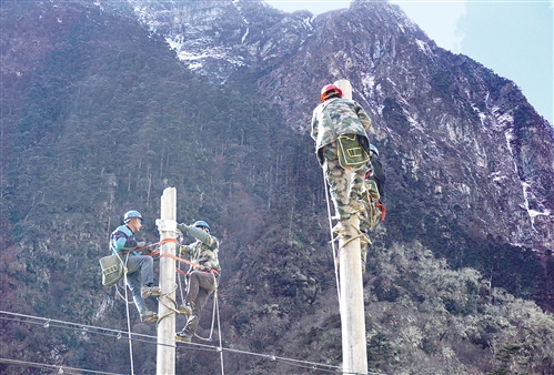 工人在玉麥鄉(xiāng)境內(nèi)施工。西藏自治區(qū)山南隆子縣玉麥鄉(xiāng)電力線(xiàn)路近日全線(xiàn)貫通,