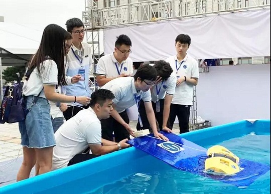 ????比賽當(dāng)日,同學(xué)們更是頂住競(jìng)爭(zhēng)壓力,在天氣非常惡劣的情況下,沉著應(yīng)對(duì),讓兩件航行器在水下出色地完成了指定動(dòng)作,獲得了評(píng)委專家們的高度贊揚(yáng)。