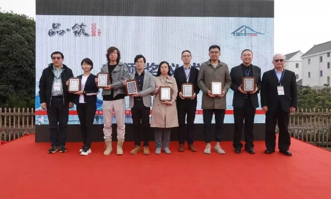 “稻田驛站”設(shè)計(jì)主創(chuàng)謝高皓(右三)參加一等獎(jiǎng)?lì)C獎(jiǎng)儀式