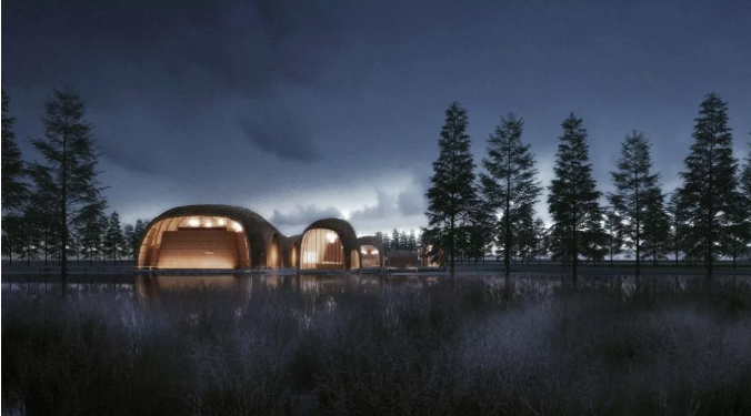 ????“稻田驛站”方案以崇明早期民居“環(huán)洞舍”為原型,設(shè)計(jì)定位區(qū)別于村落改造,設(shè)計(jì)立足稻田之間,追求野趣、樸拙的田園氣息,回歸原始建造,力求在鄉(xiāng)村振興的大背景下,喚醒人們對(duì)田野間的原始記憶。