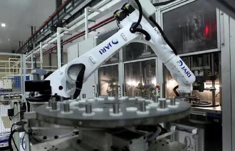 重慶紅江數(shù)字化工廠里的機(jī)器人正在工作。