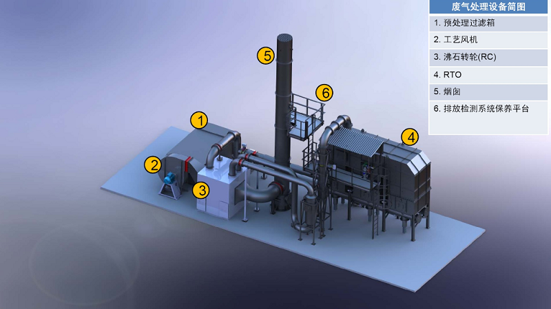 ????“多轉(zhuǎn)輪+RTO”處理工藝:兩套或多套沸石轉(zhuǎn)輪作為吸附濃縮裝置,1臺RTO(蓄熱式氧化爐,具備一定蓄熱能力的燃燒爐,通過高溫氧化的方式將氣體中的可燃物質(zhì)進行氧化,達到使氣體凈化的目的)作為燃燒凈化裝置的VOCs處理工藝。