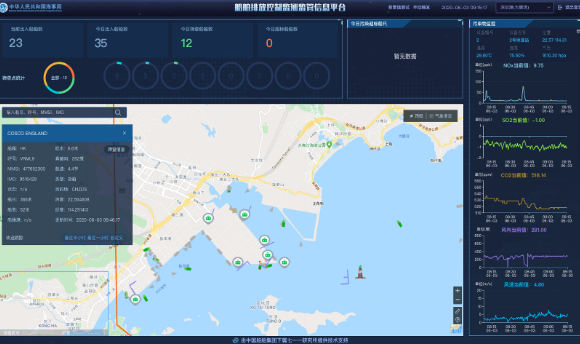 同時,項目團隊根據(jù)監(jiān)管部門需求開發(fā)了基于自動識別系統(tǒng)(AIS)的信息監(jiān)控平臺,實現(xiàn)了監(jiān)測海域船舶軌跡的可視化;通過煙雨擴散以及追蹤溯源模型建立了基于多源數(shù)據(jù)融合的超排船舶篩查算法。