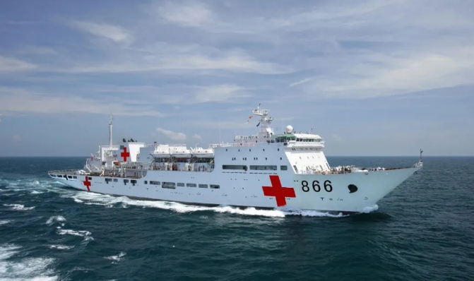“和平方舟”號醫(yī)院船,舷號866,共有8層甲板,船內(nèi)設(shè)有傷病員換乘、檢傷分類、門診、住院、后送撤離五大醫(yī)療區(qū);擁有300多張可固定的床位,7間醫(yī)護(hù)辦公室,8個(gè)護(hù)士站,8間潔凈手術(shù)室,各類診療科室18個(gè);配備200多種醫(yī)療設(shè)備,具有遠(yuǎn)洋救生能力強(qiáng)、救護(hù)手段多樣、醫(yī)療設(shè)施完備、配套設(shè)備先進(jìn)、選派隨船醫(yī)務(wù)人員醫(yī)術(shù)精湛等特點(diǎn),相當(dāng)于一所流動的“海上三甲醫(yī)院”。