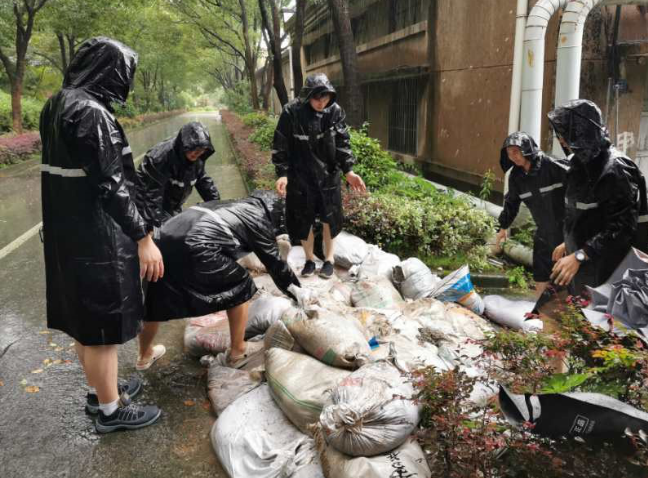 七〇二所及時啟動應(yīng)急響應(yīng),建立各部門汛情排查報告信息網(wǎng)絡(luò),安排現(xiàn)場值守巡查工作;緊急組建應(yīng)急救援隊,冒著大雨開展全所巡查,查隱患、堵漏洞、搬沙袋、疏管網(wǎng);積極落實防汛措施,及時關(guān)注所辦大樓、地下車庫等重點區(qū)域汛情,安排物業(yè)、水站、電站人員進行24小時輪值,全力保障沙袋、抽水泵等防汛物資儲備,以及食堂的食材供應(yīng),做好雨后消毒工作。