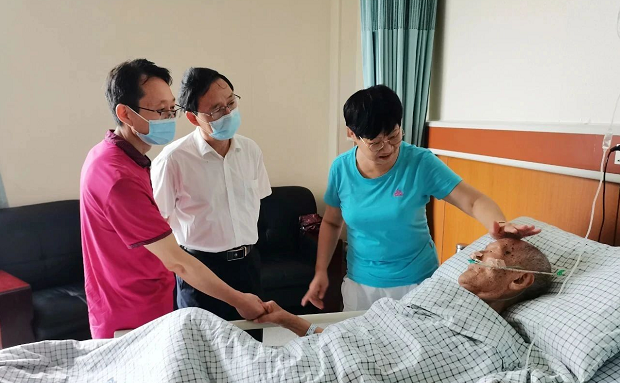 七二六所黨委副書記帶隊前往醫(yī)院看望慰問了在醫(yī)院住院治療的離休干部紀炎輝,向他致以崇高的敬意和親切的問候,并送上慰問金。