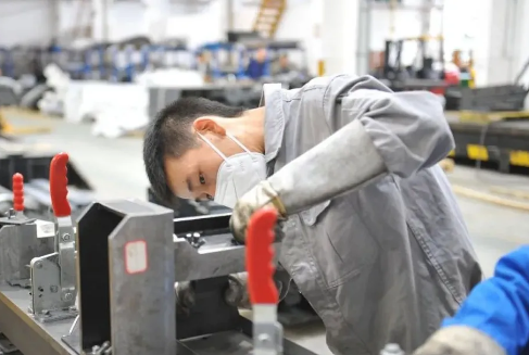 看,昆船公司小伙伴認(rèn)真的眼神。他正專注于成都機(jī)場(chǎng)輸送設(shè)備的零部件焊接裝卡工作。