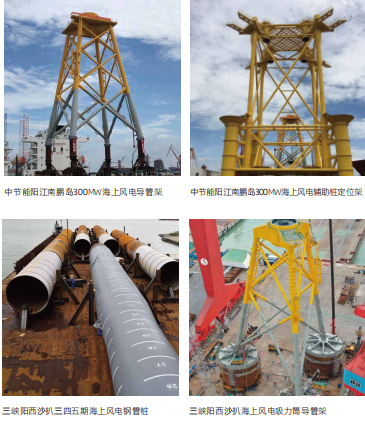 海上基礎類風電產品包括海上風電導管架、輔助樁定位架、穩(wěn)樁平臺、鋼管樁、吸力筒導管架、風電單樁等。