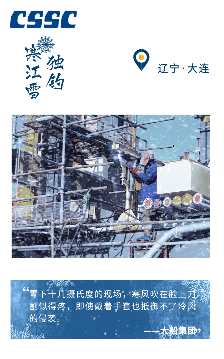 -5℃、-10℃、-20℃ …… 在這個不斷刷新寒冷指數(shù)的冬季 從未缺席中國船舶人勞作的身影 皎潔的白雪、火紅的爐膛 呼嘯的海風、疾行的足音 奏響了冬季船舶人的 冰與火之歌