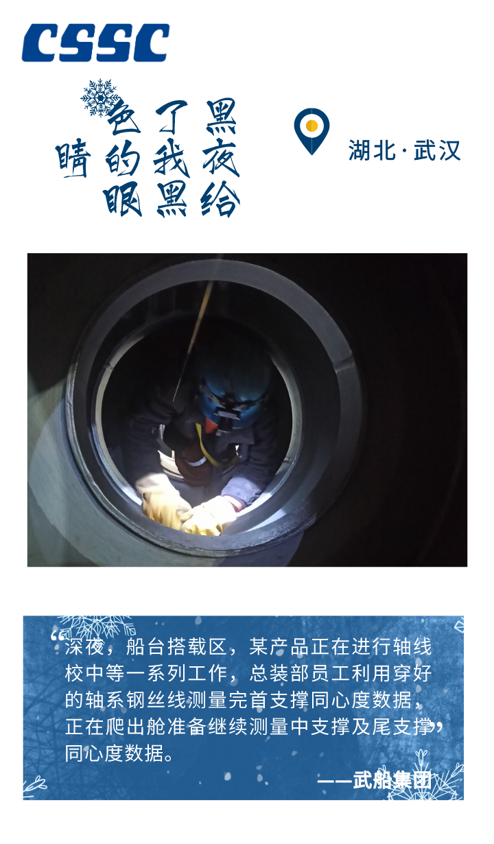 晨光熹微中啟程 夜色如墨時堅守 從北至南 這群奮進的船舶人 將冬日熱血灑在祖國大地 譜寫了一曲昂揚的勞動者之歌