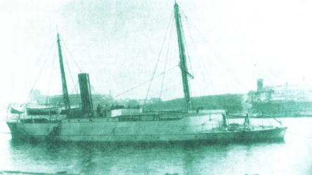△我國第一艘自行設(shè)計建造的淺水炮艇“海東雄”號(蚊子船)