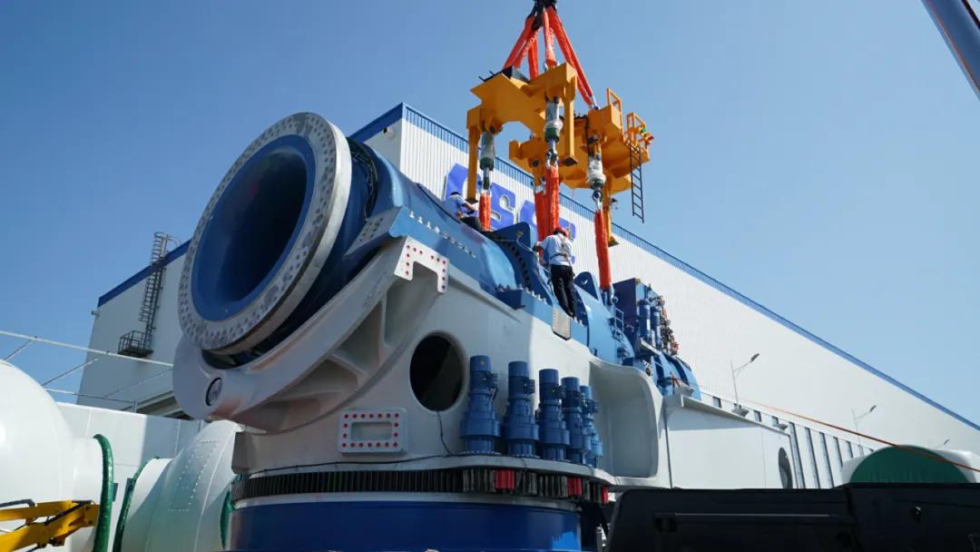 中國海裝工人在吊裝H210-10兆瓦機(jī)組傳動鏈