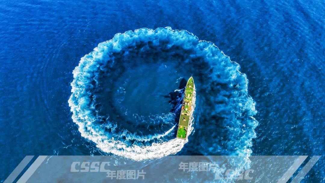 大型航標(biāo)船“海巡156”號(hào)海上試航。回轉(zhuǎn)試驗(yàn)時(shí),藍(lán)色海面上留下了一個(gè)大大的“6”。該船是我國(guó)首艘具備破冰能力的大型航標(biāo)船。