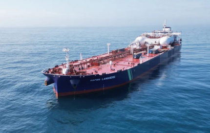 1月30日,由廣船國際建造,中船租賃和Hafnia公司聯(lián)合投資的11萬噸液化天然氣(LNG)雙燃料原油/成品油船1號(hào)船“HAFNIA LANGUEDOC”號(hào)正式舉行命名儀式。