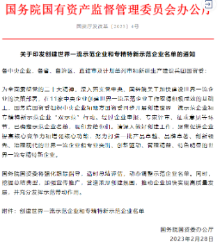 創(chuàng)建世界一流專精特新示范企業(yè)是國務(wù)院國資委貫徹黨中央、國務(wù)院關(guān)于加快建設(shè)世界一流企業(yè)決策部署,深化創(chuàng)建示范、管理提升、價(jià)值創(chuàng)造、品牌引領(lǐng)“四個(gè)專項(xiàng)行動(dòng)”的重要內(nèi)容,目的在于加快建設(shè)一批培育一批“專精特新”“小巨人”和單項(xiàng)冠軍企業(yè),在不同領(lǐng)域形成百家以上不同層級(jí)的典型示范企業(yè)。