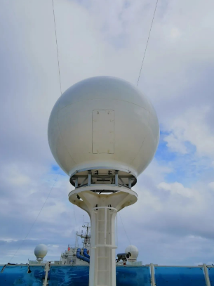 站在煙囪下面往船艏方向看,正對著1個大球,前前后后,愛達·魔都號的頂部共有5個同款大球,它們分別用于收發(fā)來自衛(wèi)星的電視和網(wǎng)絡(luò)信號,船上“5G+WIFI”網(wǎng)絡(luò)系統(tǒng)和艙室的IPTV就是在它們的加持下才得以實現(xiàn)。