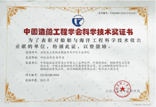 近日,中國造船工程學會發(fā)布了2023年科學技術獎評審結(jié)果,中國船舶集團七二五所申報的“高強度止裂鋼關鍵技術及評價方法研究”榮獲科技進步獎特等獎。項目團隊歷經(jīng)十余年技術攻關,在國際上首次提出了止裂性能大尺寸雙重拉伸試驗方法和小尺寸替代試驗方法,并成功將其納入國際船級社協(xié)會(IACS)通用規(guī)范,極大提升了我國在該領域的國際話語權和技術影響力。