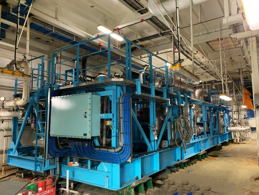 近日,七一一所為滬東中華建造的14000立方米液化天然氣(LNG)加注運(yùn)輸船所提供的LNG深冷式再液化裝置(以下簡稱深冷裝置)圓滿完成了所有試航測試項(xiàng)目,并順利交付。