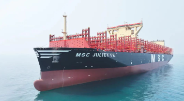 “MSC 朱麗葉”號安裝脫硫塔并預留液化天然氣(LNG)動力功能,采用全新理念的環(huán)保減碳減阻設計,滿足最新的環(huán)保排放標準,是一款綠色環(huán)保、高效節(jié)能的大型集裝箱船。